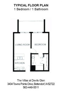 Welcome Home! The Villas at Devils Glen offers an amenity rich, pet-friendly community in a variety of one and two bedroom floorplans. Conveniently located near interstate 74/80 in Bettendorf Iowa, The Villas is central to all your needs and within walking distance to restaurants, a brewery, coffee shop, gas, banking and grocery. Less than a mile from colleges, high schools and elementary schools.